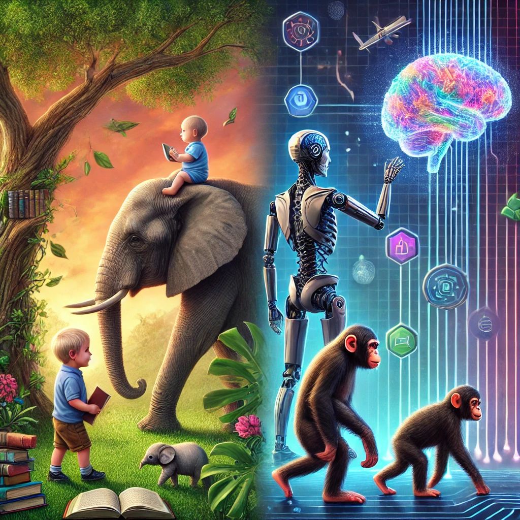 In the natural world, intelligence is often correlated with the length of development time after birth. Species that take longer to mature tend to exhibit higher cognitive abilities, as this extended period allows for learning, socialization, and skill acquisition. This principle applies not only to humans but also to other highly intelligent animals like great apes, elephants, whales, and some birds. Interestingly, this concept can also be observed in artificial intelligence (AI), where longer training times generally lead to more sophisticated and capable models.